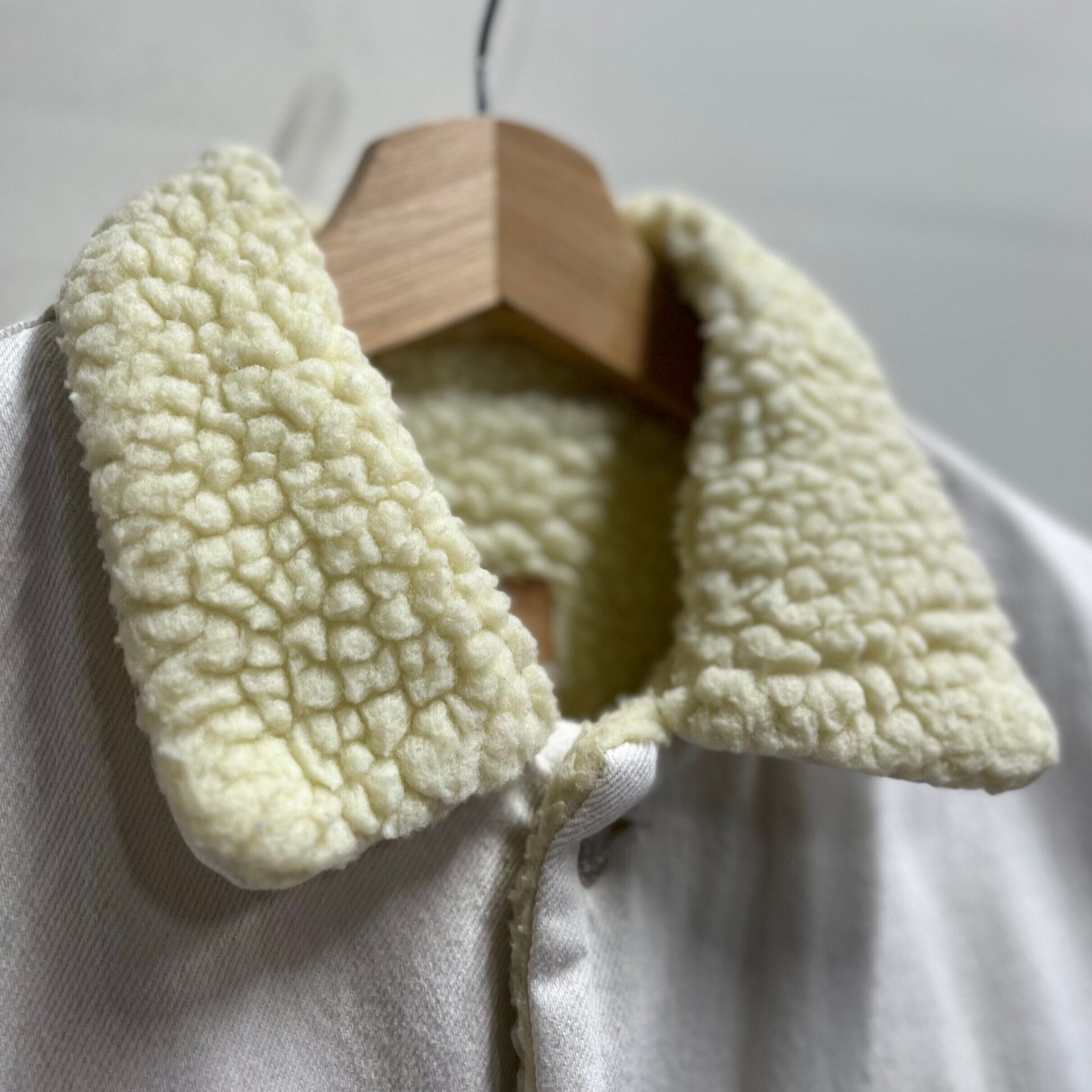 首ラベル、内側タグの表記が全て消えており詳細は不明です・・・がとても良いボアトラッカージャケットです。